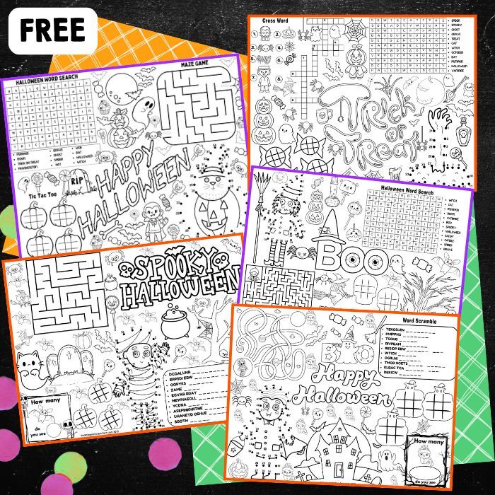 Activity placemats with a Halloween theme. Mazes, dot-to-dot, word searches and more from A Little Pinch of Perfect, of course they don't only have to be used during dinner...